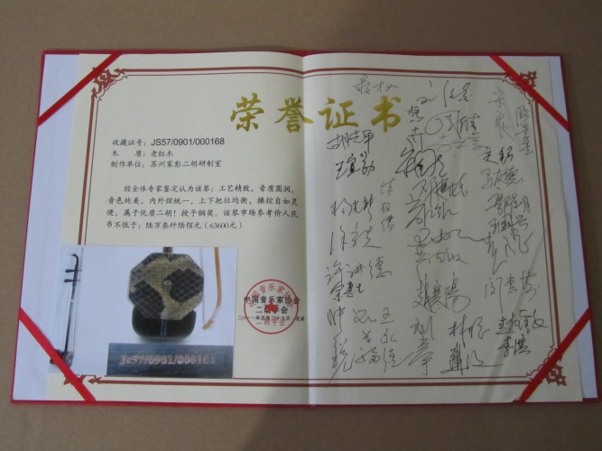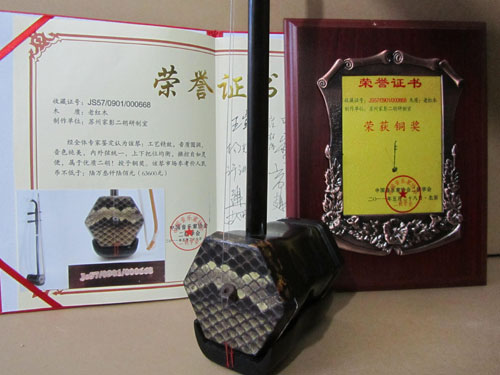 二胡制作大師丁家彭先生1949年出生樂器世家,17歲隨其祖父學(xué)琴藝,并深得精髓,其聰穎好學(xué),悉心鉆研與 探求二胡制作,博得同行的欽佩贊許,更得了許多知名演奏家的稱贊,充分認(rèn)識到二胡制作每個環(huán)節(jié),都對二胡制作都有影響力,因此對二胡的選材,選料,蟒皮都十分嚴(yán)格,二胡整體穩(wěn)定性良好,環(huán)境干擾影響極小。